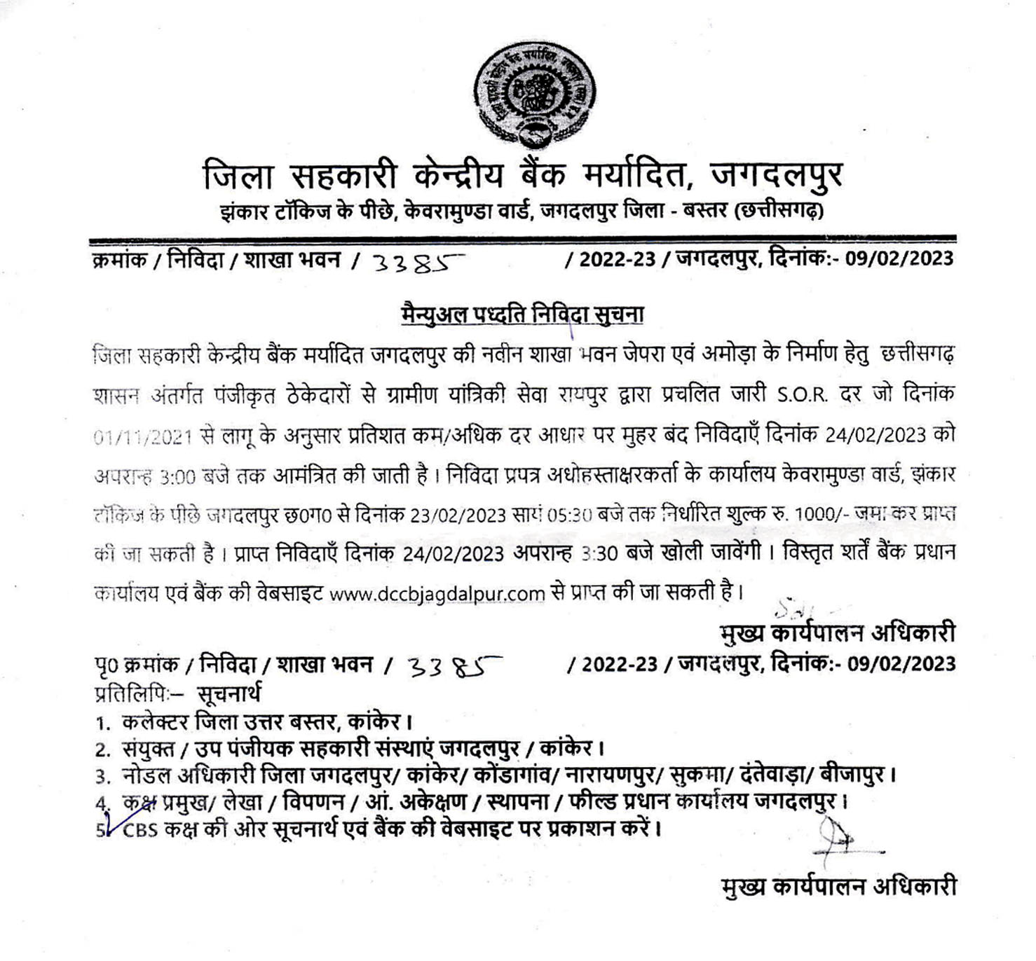 - बैंक की नवीन शाखा जेपरा एवं अमोड़ा के भवन निर्माण हेतु निविदा आमंत्रण
